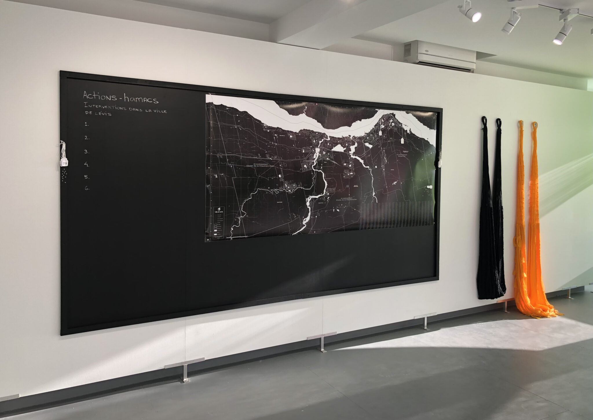 Du 13 mai au 12 juin 2022, sept hamacs faits à la main aux couleurs vives et très visibles – rose mexicain, vert lime, bleu azur et jaune mangue – seront disponibles au public. L’artiste les met à la disposition des individus pour une durée limitée afin qu’ils et elles les empruntent et les installent sur le territoire urbain ou rural de Lévis. Il est demandé aux volontaires de documenter leur “occupation” de l’espace public à l’aide de photographies personnelles. Regart publiera progressivement ces images sur les réseaux sociaux. Ces actions visent à suggérer ou revendiquer une nouvelle vocation au lieu choisi ou encourager le flânage et l’arrêt pour construire un nouvel imaginaire dans la zone ciblée par les participant·es.